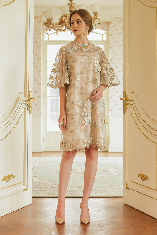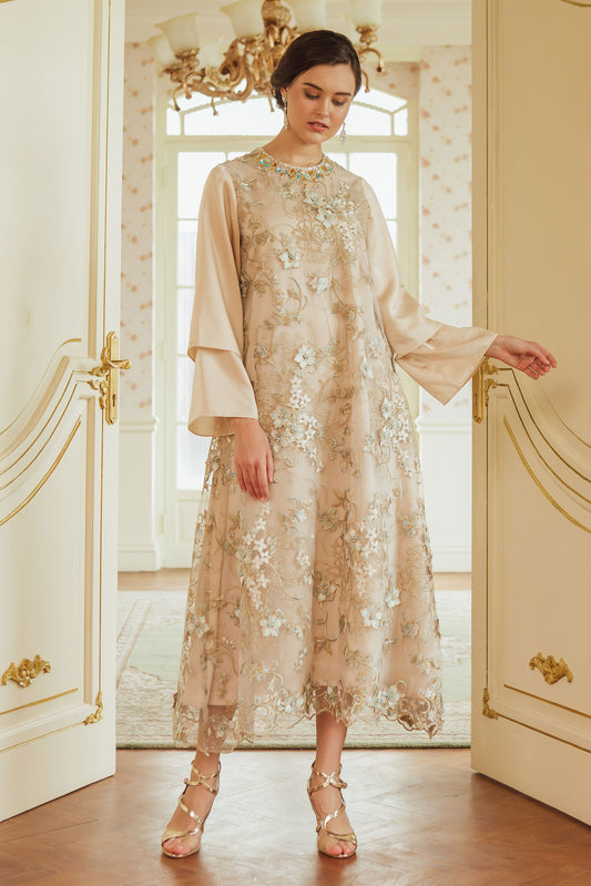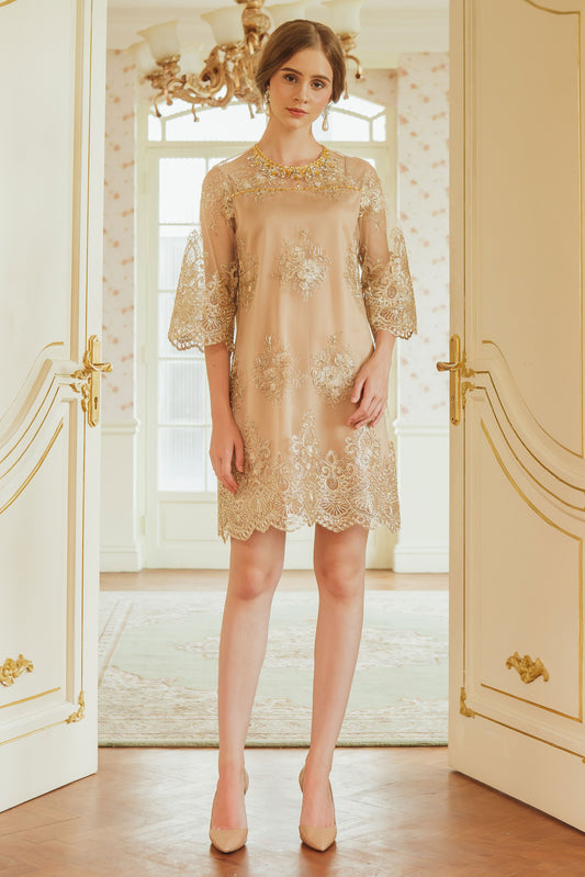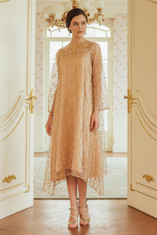 Noble - Gold Lace Midi Dress
